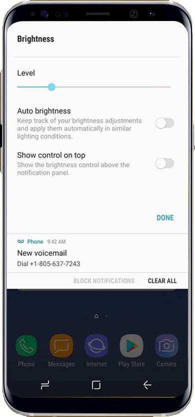 In alternativa, puoi anche regolare il livello di luminosità semplicemente abbassando la barra delle notifiche e regolando il dispositivo di scorrimento secondo le tue esigenze.