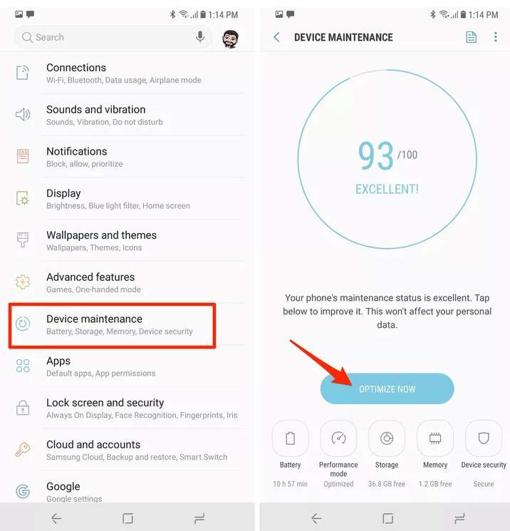 La maggior parte del telefono Samsung Galaxy ha un’app eccellente che è l’app “Manutenzione dispositivo”. Con l’aiuto di questa app puoi ottimizzare il tuo telefono in quanto può chiudere le app inutilizzate, cancellare le cache, liberare spazio di memoria, ecc. E garantire che il tuo telefono funzioni nel modo più efficiente possibile. Meno energia sprechi per servizi di cui non hai bisogno, maggiore sarà la carica della batteria che durerà più a lungo.