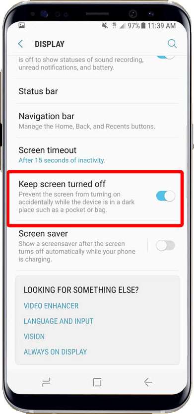 Questo è in realtà meno attivo e più un consiglio di precauzione. A volte capita che lo schermo del nostro telefono sia rimasto ACCESO accidentalmente per tutto il tempo quando lo teniamo in tasca, in borsa o in borsa.