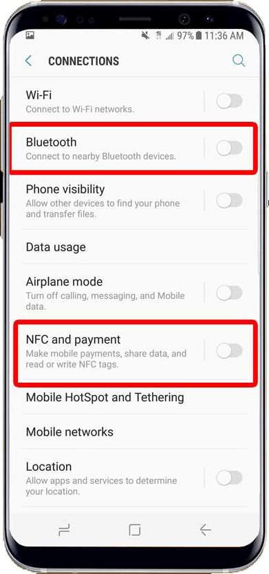 - Quindi disattivare la funzionalità Bluetooth e NFC.