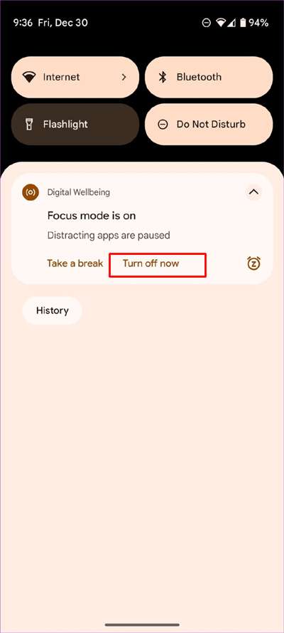Tuttavia, riceverai una notifica da Digital Wellbeing quando Focus è abilitato.