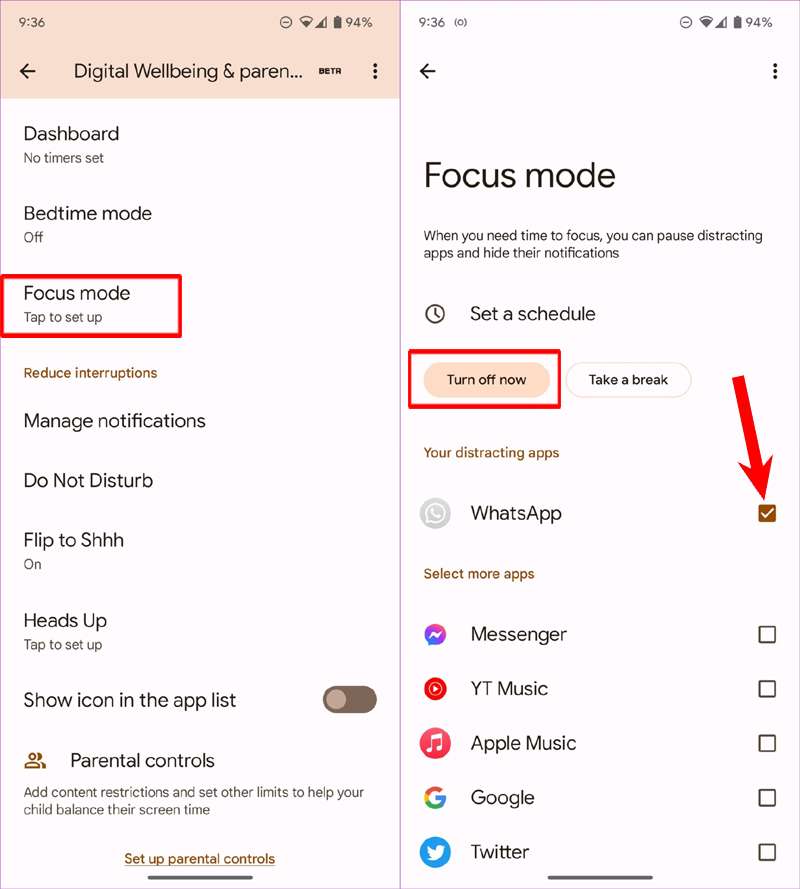 Inoltre, puoi modificare le modifiche alla modalità Focus. Ecco come: