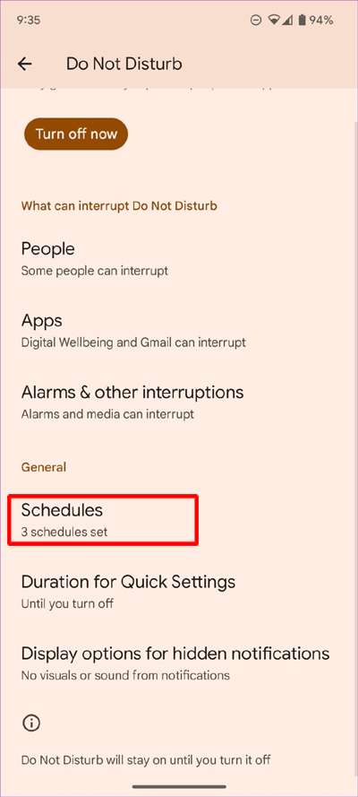 Se hai impostato la programmazione per l’attivazione e la disattivazione della modalità Non disturbare a un’ora prestabilita, il dispositivo lo farà automaticamente per te.