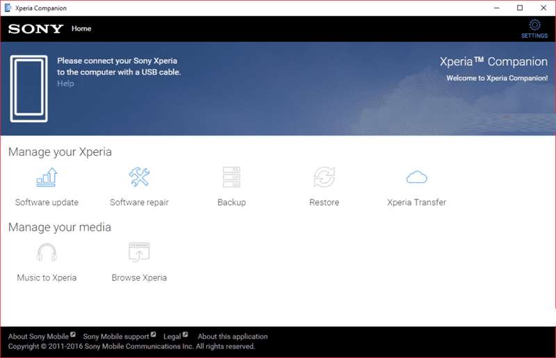 - Apri Xperia Companion sul tuo PC e tocca l’opzione “Ripristina“.